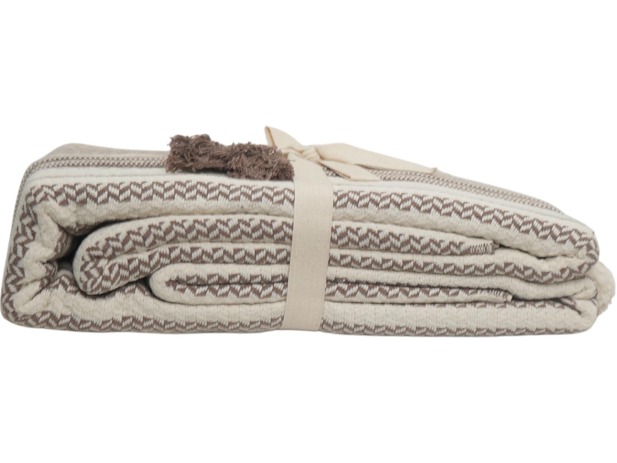 İhraç fazlası yöresel desenli dokusu yumuşak ponpon detaylı çift kişilik Kahve-Bej yatak örtüsü 220 × 240 cm