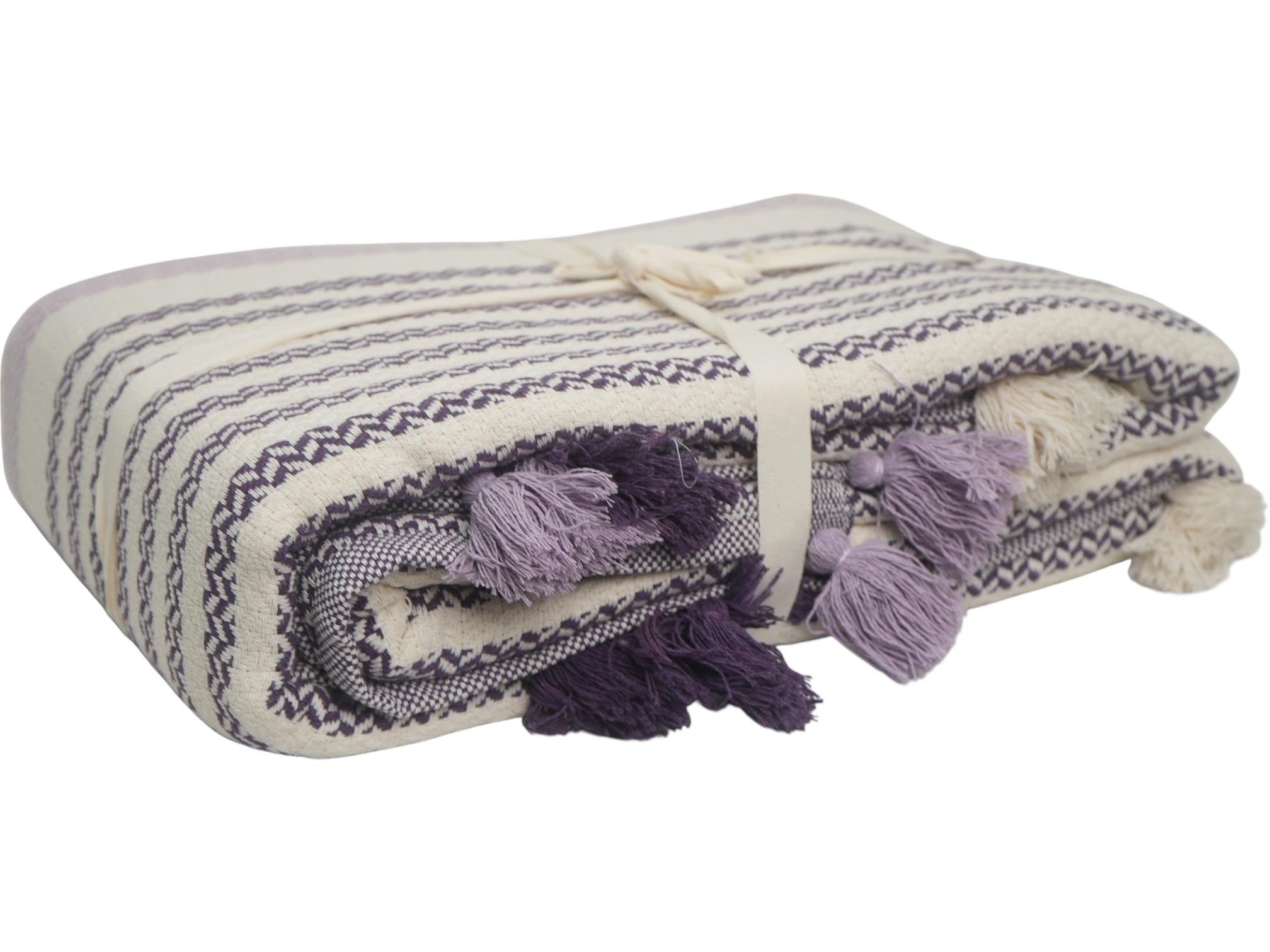 İhraç fazlası yöresel desenli dokusu yumuşak ponpon detaylı çift kişilik Mor-Lila yatak örtüsü 220 × 240 cm