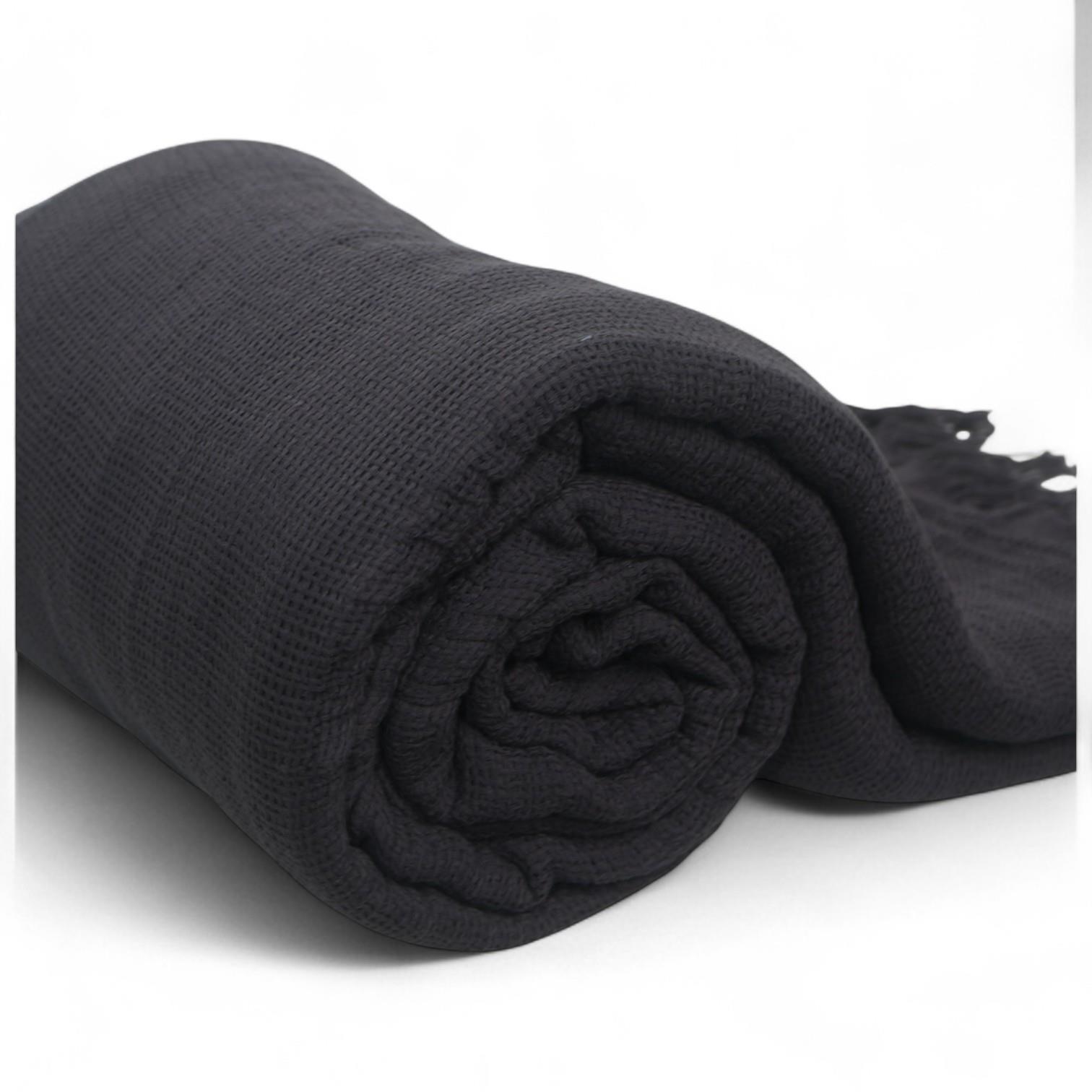 İhracat fazlası nefes alabilen pike yatak örtüsü saçaklı Antrasit 270 × 300 cm