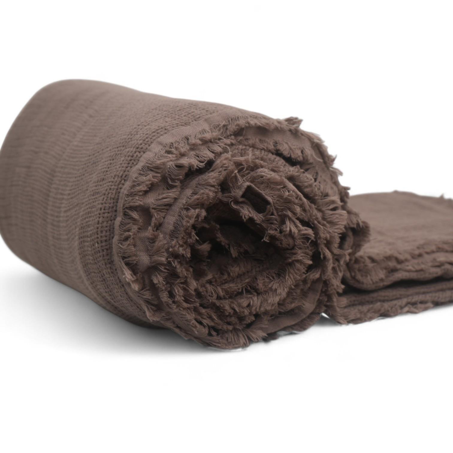 İhracat fazlası nefes alabilen pike yatak örtüsü saçaklı Kahve 270 × 300 cm