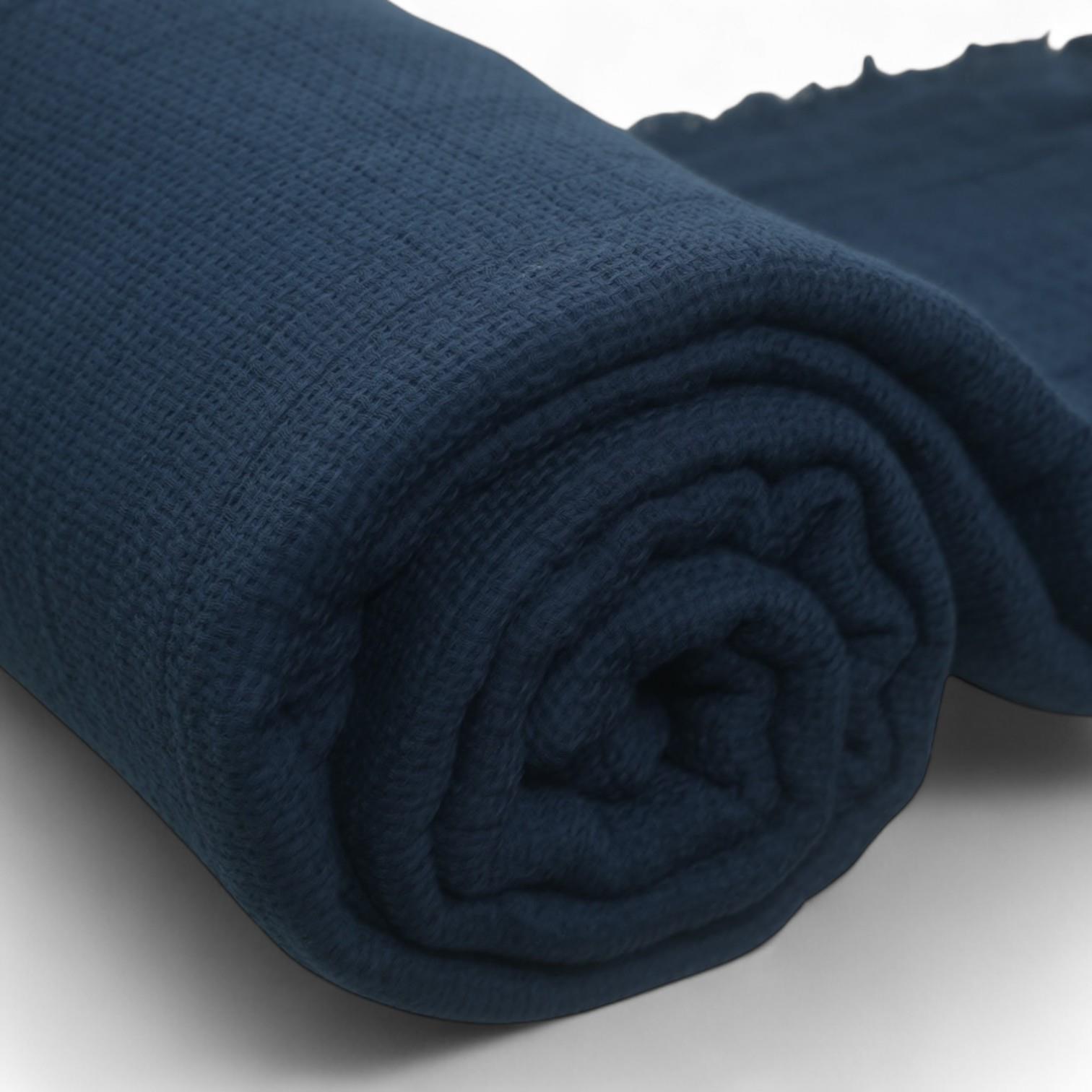 İhracat fazlası nefes alabilen pike yatak örtüsü saçaklı Larcivert 270 × 300 cm
