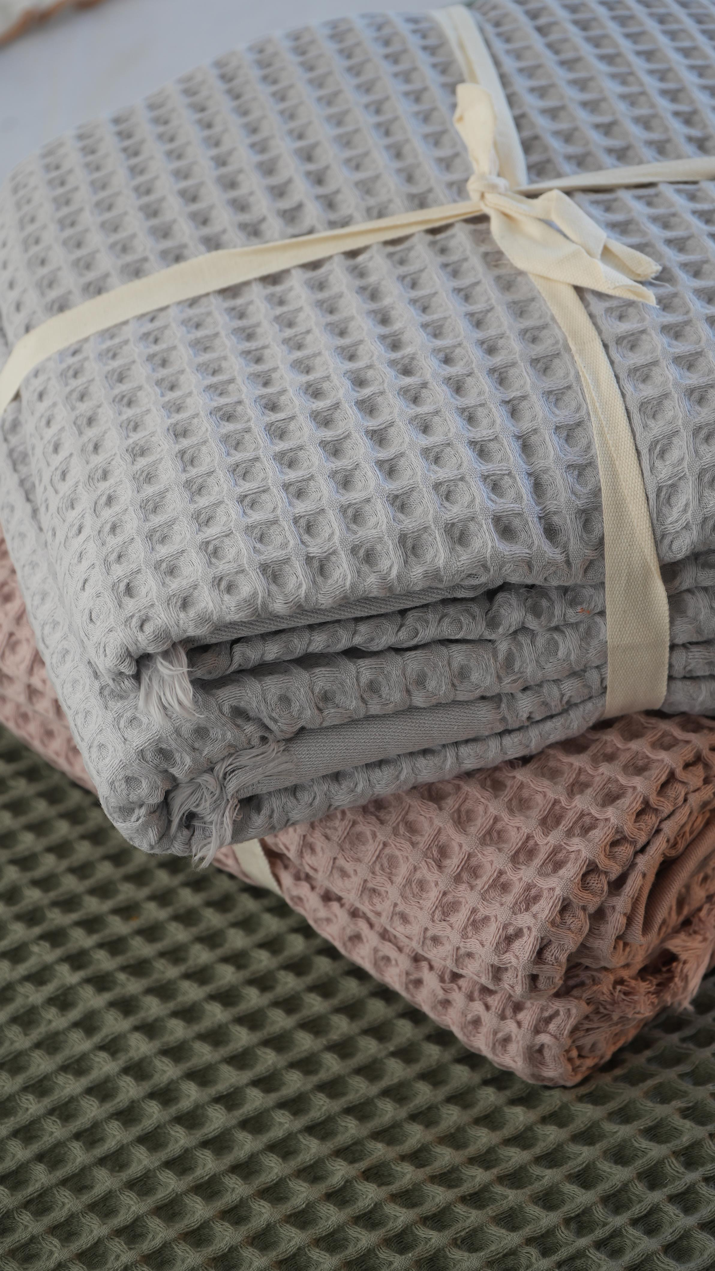 İhracat fazlası waffle desen gri çift kişilik 220 × 240 cm