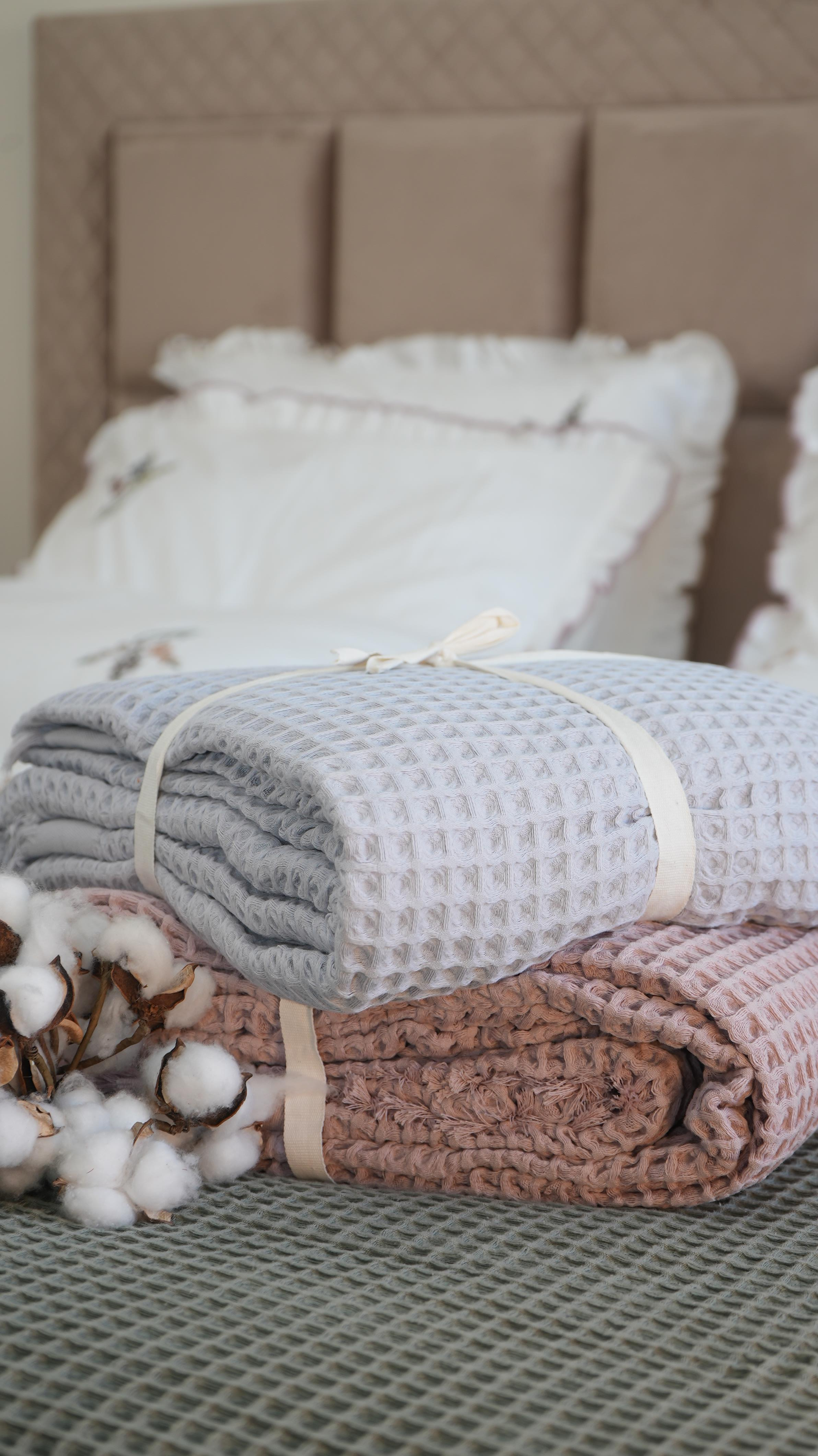İhracat fazlası waffle desen pembe tek kişilik 150 × 200 cm
