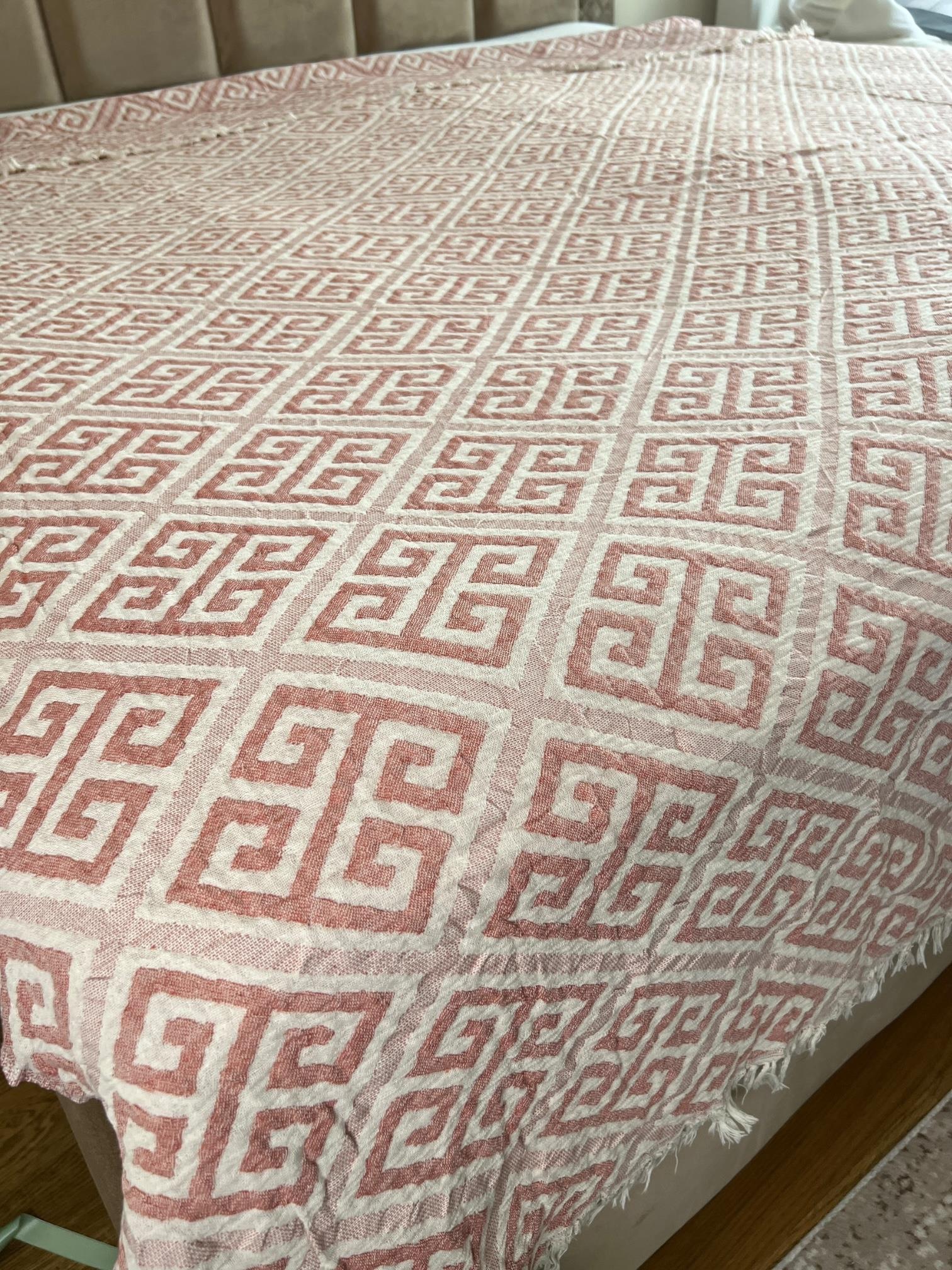 Müslin Yatak Örtüsü – Jakarlı Desenli, Çift Yönlü, İhracat Fazlası %100 Pamuk Konfo