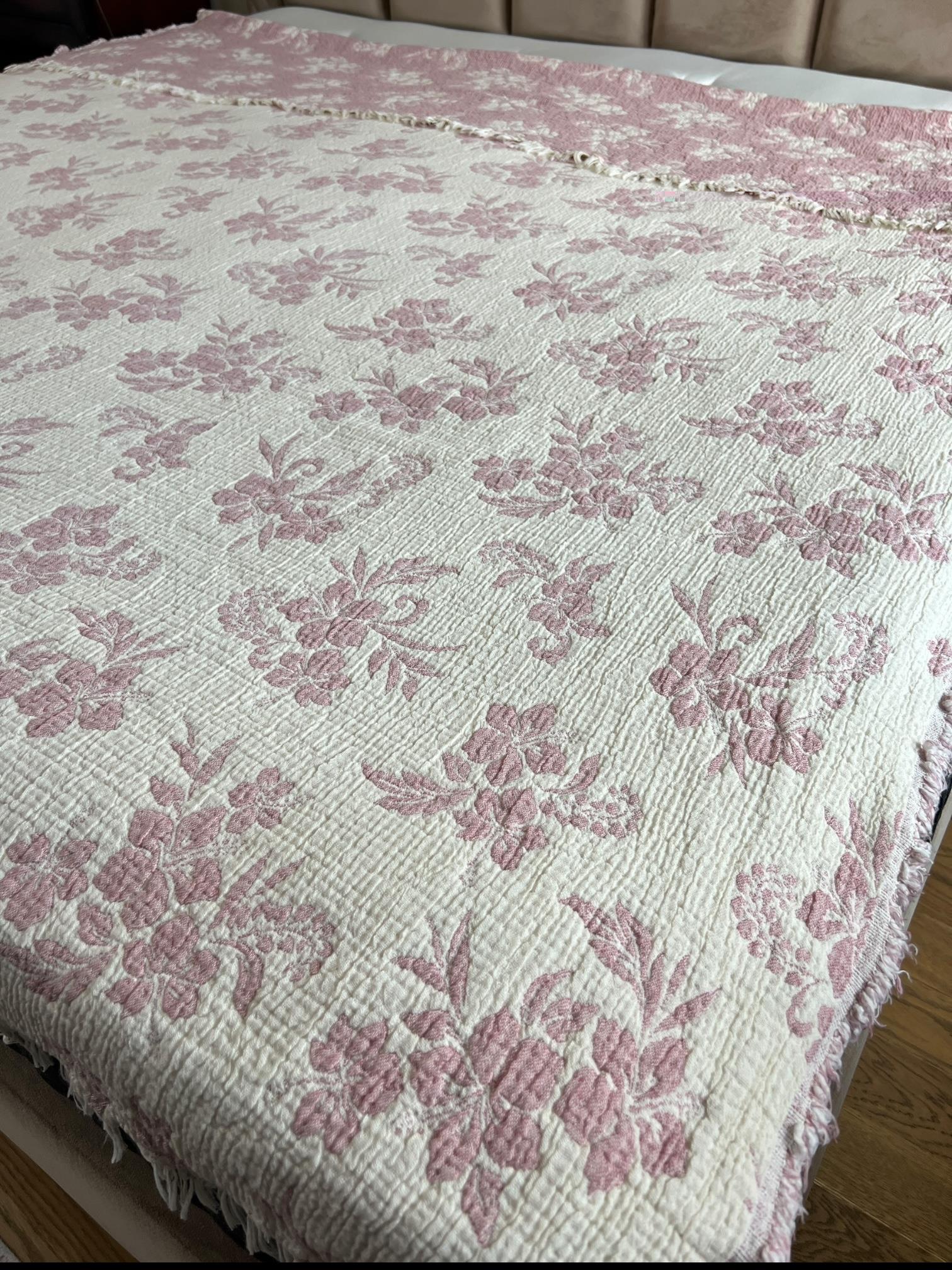 İhtacat fazlası Jakarkı müslin yatak örtüsü 220x240 cm pembe çicekli