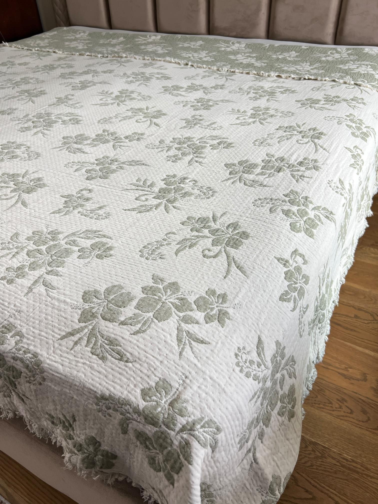 İhtacat fazlası Jakarkı müslin yatak örtüsü 220x240 cm yeşil çicekli