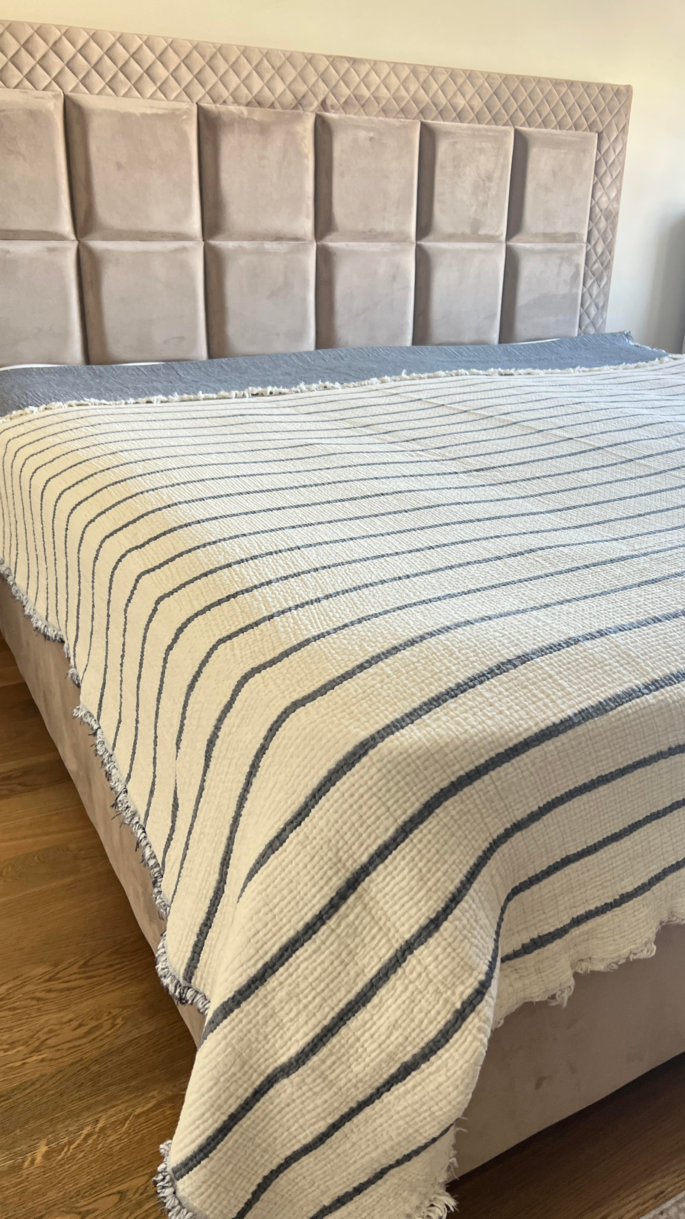 Müslin Yatak Örtüsü – Çizgi Detaylı & Düz Renkli, Çift Taraflı %100 Pamuk, İhracat Fazlası