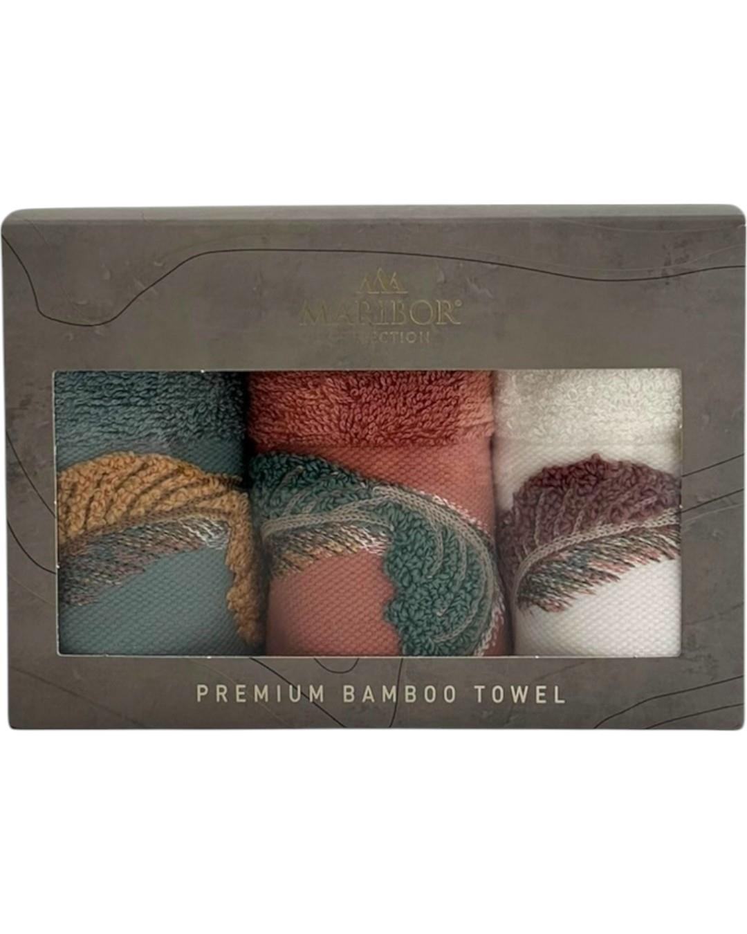 %70 Bambu / %30 Pamuk  Nakışlı El Havlusu - 3 lü Set (30x50 cm)