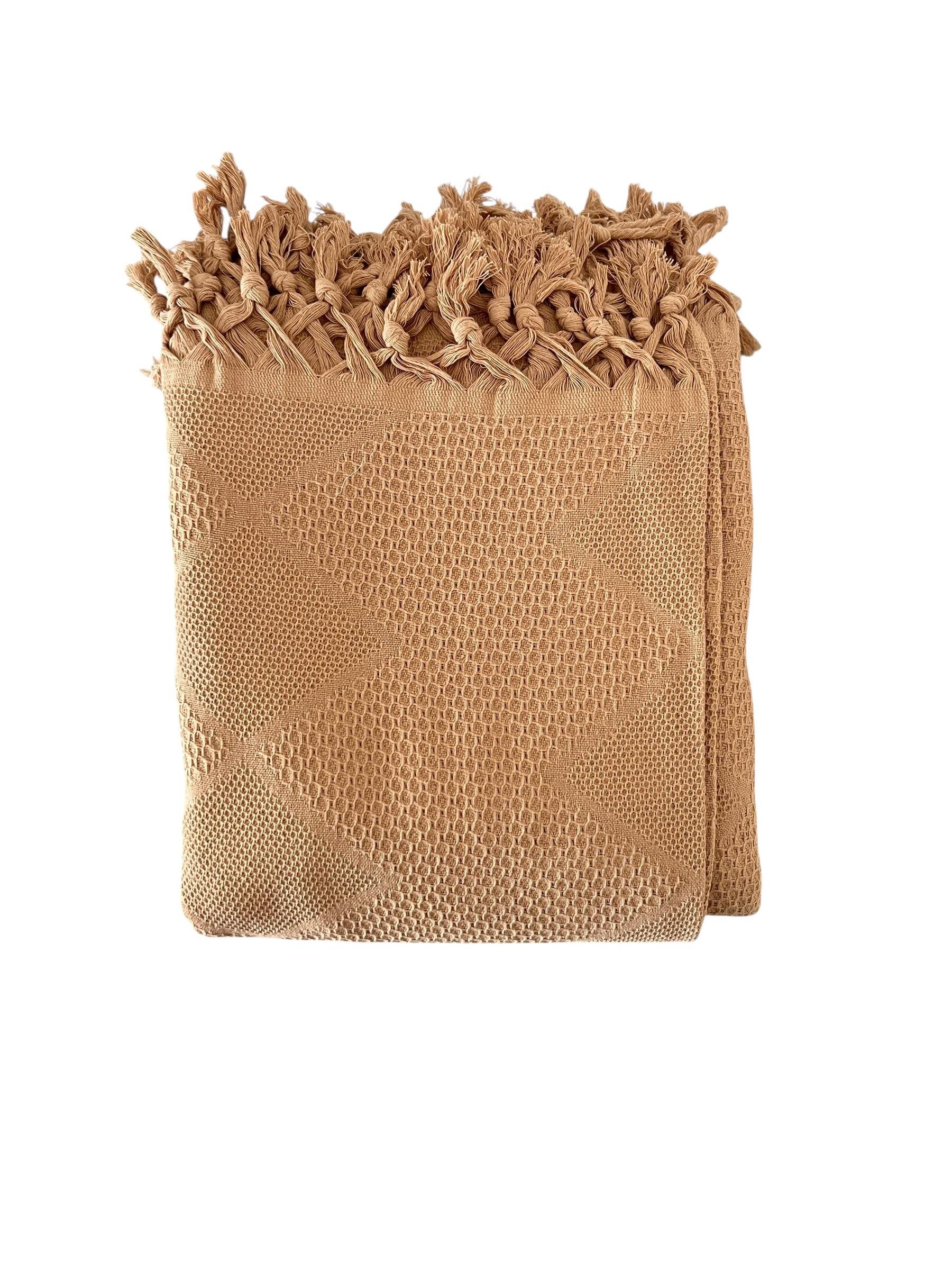Ring ipliğe altı saçaklı yumuşak dokuma pike 220 × 240 cm karamel
