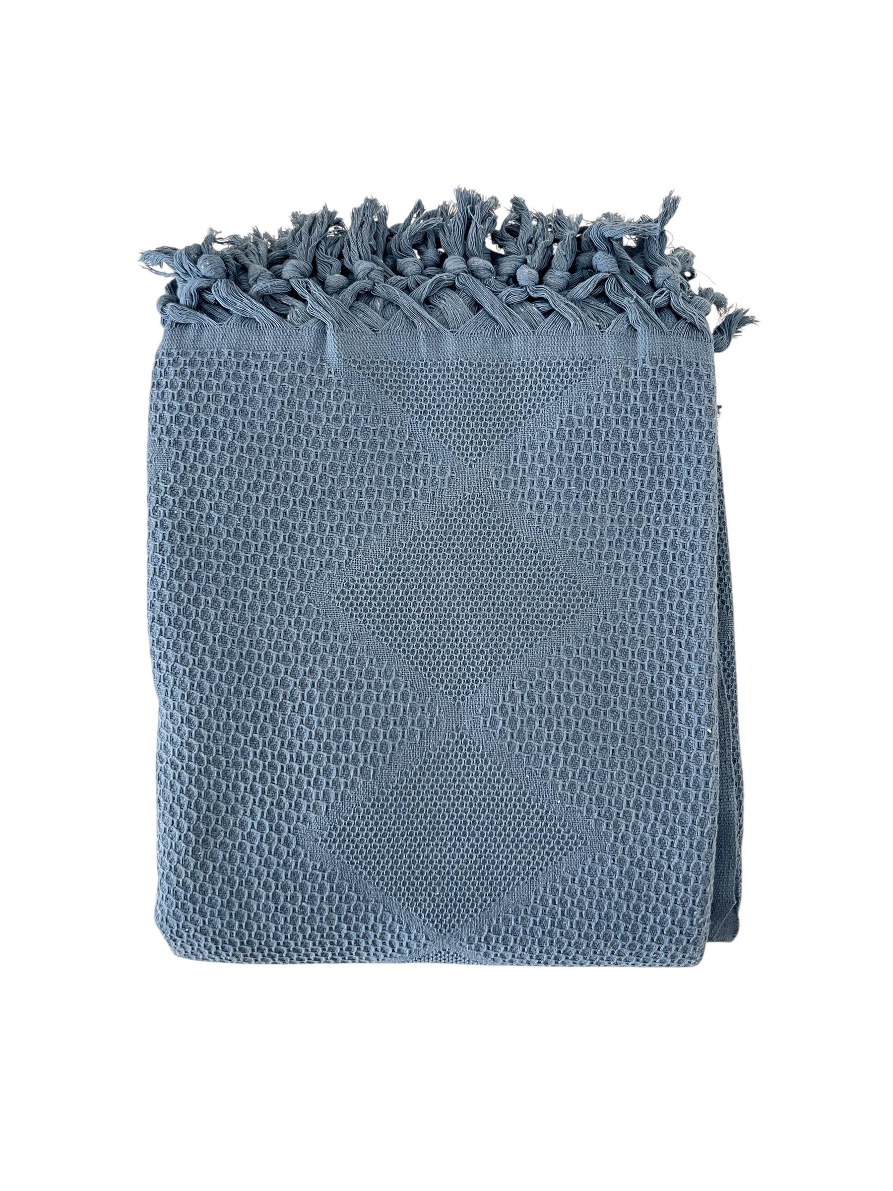Ring ipliğe altı saçaklı yumuşak dokuma pike 220 × 240 cm koyu petrol mavisi