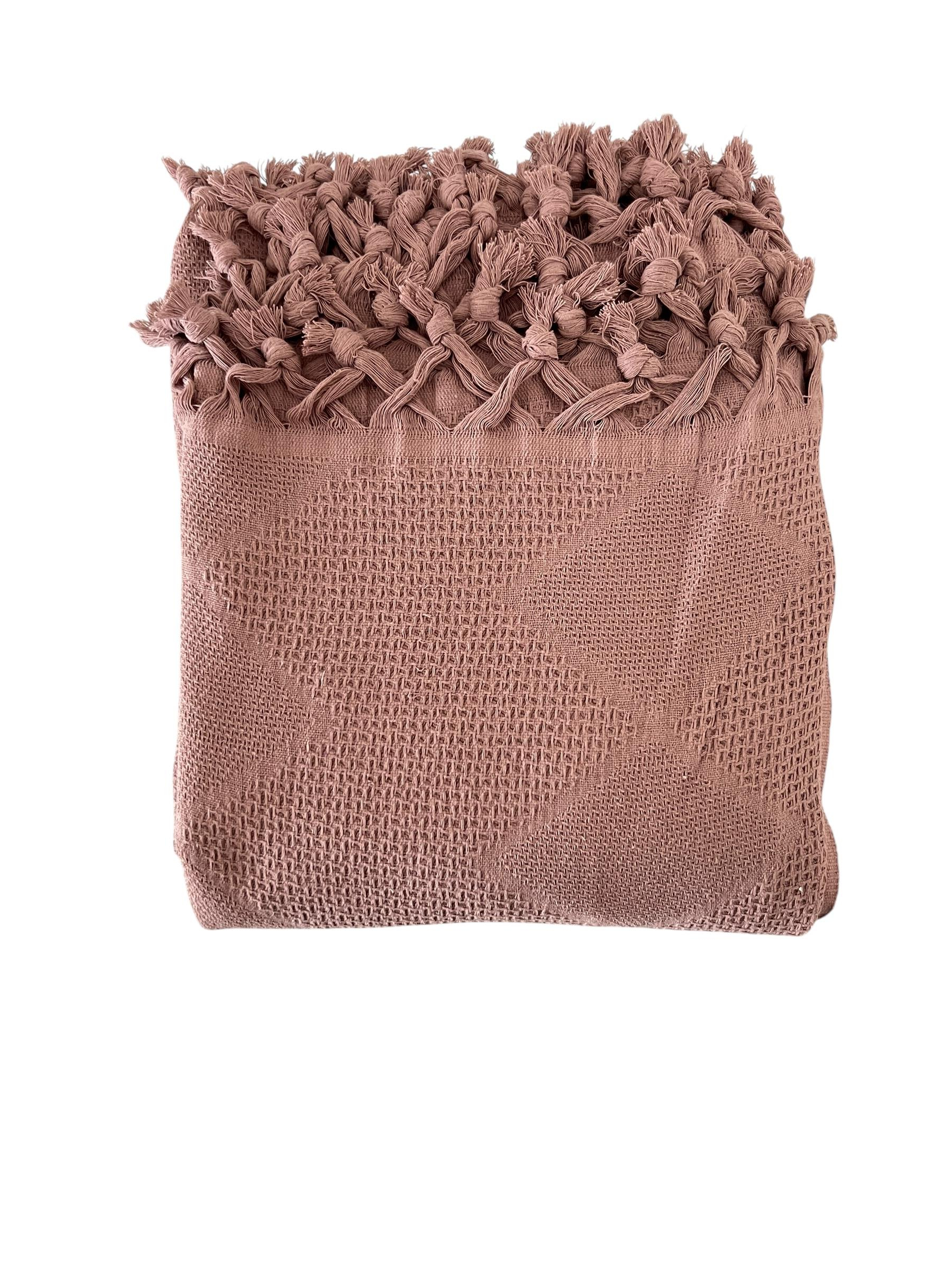 Ring ipliğe altı saçaklı yumuşak dokuma pike 220 × 240 cm pudralı mor