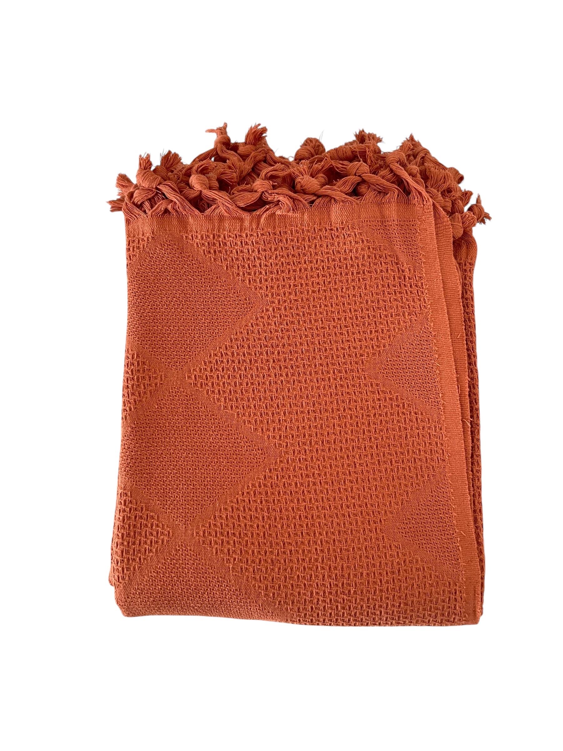 Ring ipliğe altı saçaklı yumuşak dokuma pike 220 × 240 cm tarçın