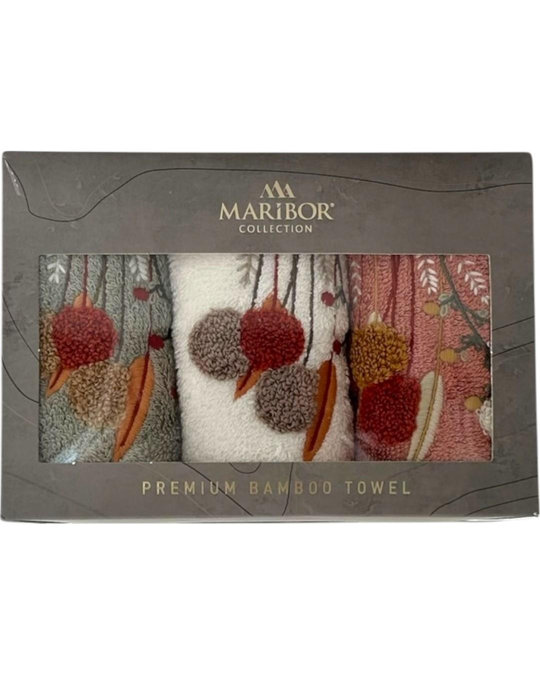 %70 Bambu / %30 Pamuk  Nakışlı El Havlusu - 3 lü Set (30x50 cm)